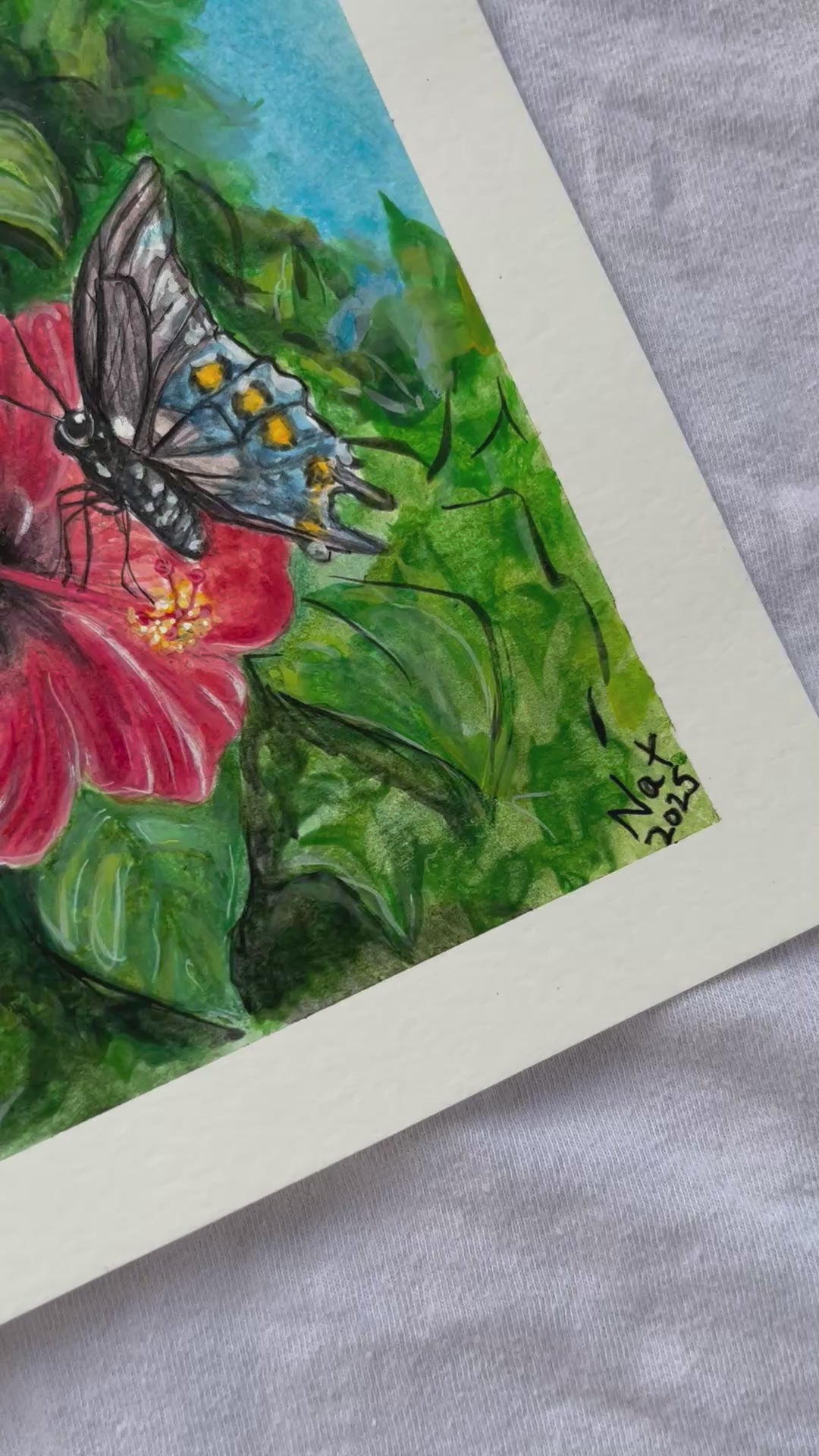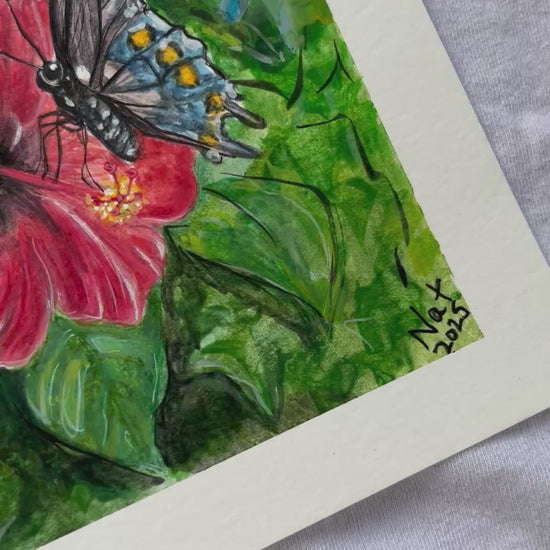 Original (not a print) FRAMED Hibiscus and Hummingbird painting 9x12. Watercolor on cold pressed cotton paper. Painted with full moon water and loving thoughts, this painting is bound to bring joy to any sacred space. This painting has a few minor tears on the border, but is not too visible when framed!